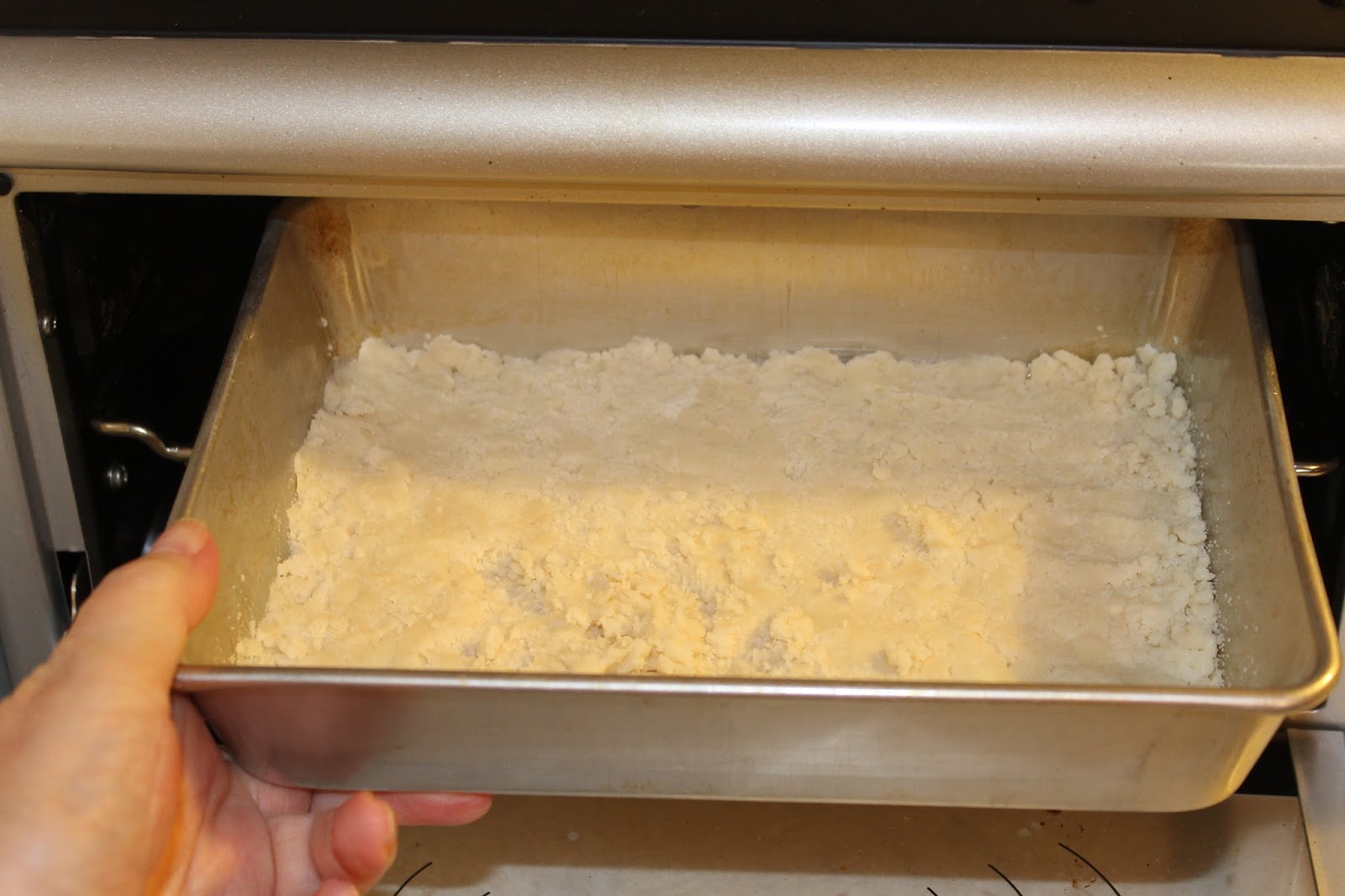 They say when life hands you lemons, make lemonade. Well, I didn't exactly have any lemons, but I had the product thereof, so I came up with my version of the famous Lemon Bar, baked in a tiny pan, in my tiny oven, in my tiny kitchen.